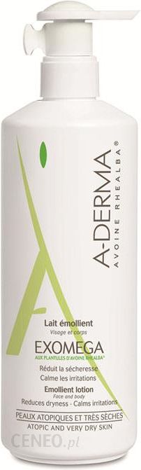Dermokosmetyki Postać Mleczko do ciała Opakowanie Pojemnik z pompką 400 ml Skład Water, Petrolatum, Sorbitan Stearate, Butyrospermum Parkii Butter, Glycerin, Mineral Oil (Paraffinum Liquidum), Butylene Glycol, Dimethicone, Behenyl Alcohol, Oenothera Biennis Oil, Aluminium Starch, Octenylsuccinate, Niacinamide, 10-Hydroxydecenoic Acid, Avena Sativa Stem Extract, Benzoic Acid, BHT, Carbomer, Chlorphenesin, Maltodextrin, Phenoxyethanol, Sucrose Cocoate, Tetrasodium EDTA, Tocopherol, Triethanolamine, Xanthan Gum. Rhealba® ekstrakt z owsa – koi podrażnioną skórę i zmiękcza ją. Witamina B3 – działa na korneocyty. Filaxérine®, unikalne połączenie filagryny i omega-6 kwasów tłuszczowych – pomaga odnowić barierę skórną. Gliceryna – nawilża skórę. Działanie Łagodne mleczko na bazie wyciągu z owsa Rhealba do skóry atopowej, wrażliwej i bardzo suchej jednocześnie wrażliwej. Polecane dla niemowląt, dzieci i dorosłych. Produkt hypoalergiczny bez mydła. Dzięki zawartości kompleksu złożonego z wyciągu Avoine rhealba i wolnych kwasów tłuszczowych omega-6, mleczko Exomega dostarcza skórze substancji niezbędnych do jej ukojenia oraz wzmocnienia jej bariery ochronnej. Bogate w składniki nawilżające i natłuszczające, zmiękcza skórę i eliminuje objawy suchości. Płynna konsystencja mleczka ułatwia jego rozprowadzenie na powierzchni ciała. Przyjemny w stosowaniu dzięki subtelnemu zapachowi i aksamitnej konsystencji. Wskazania Mleczko przeznaczone jest do pielęgnacji bardzo suchej lub atopowej skóry niemowląt, dzieci i dorosłych, do stosowania na ciało. Sposób użycia Nakładać średnio 2 razy dziennie, zwracając szczególną uwagę na bardzo suche obszary skóry twarzy I ciała. Bezpośrednio po aplikacji zalecane jest wykonanie delikatnego masażu, co jest szczególnie istotne u dzieci z atopią. Stosować na oczyszczoną, suchą, nieuszkodzoną skórę.
