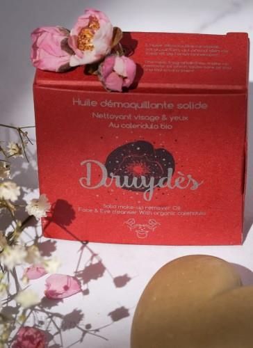 | Oczyszczanie i demakijaż twarzy | Naturalny olejek do demakijażu w kostce firmy Druydes. Delikaty olejek do demakijażu w kostce do wszystkich typów cery. 100% naturalny. Oczyszcza twarz dając uczucie świeżości. Eliminuje ślady makijażu i pozostawia skórę odżywioną. Został nagrodzony we Francji nagrodą Victoire de la Beauté. Posiada certyfikat COSMOS NATURAL ( Cosmetic Organic Standard) co oznacza, że do produkcji tego produktu zostały użyte wyłącznie naturalne składniki. Jest to produkt przyjazny środowisku bo pozwala wyeliminować użycie wacików do zmywania makijażu. Opakowanie natomiast wykonane jest z wiśni i jest kompostowalne. Bogaty w takie składniki jak: masło Shea, olejek z baobabu, maceraty z nagietka. Jest przetestowany dermatologicznie. Posiada certyfikat Slow Cosmetique i jest wegański. INCI: Bentonite, Cetearyl Alcohol, Decyl Glucoside, Butyrospermum Parkii Butter*, Rhus Verniciflua Peel Cera, Euphorbia Cerifera Cera, Helianthus Annuus Seed Oil & Calendula Officinalis Flower Extract*, Adansonia Digitata Seed Oil*, Tocopherol. 24,7% wszystkich skłądników pochodzi z ekologicznych upraw. 100% składników jest naturalnego pochodzenia |