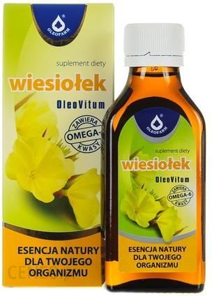 Witaminy i minerały | Nazwa: Wiesiołek OleoVitumPostać: płynDawka: -Opakowanie: 100 mlSkład:Olej z nasion wiesiołka zimnotłoczony, mieszanina tokoferoli (witamina E)(przeciwutleniacz).Dzienna porcja dla dorosłych (5, ml) zawiera:3,8 g wielonienasyconych kwasów tłuszczowych,w tym: 3,79 g kwasów omega-6 ( z czego 0,48 g stanowi kwas gamma-linolenowy (GLA)).Dzienna porcja dla dzieci powyżej 3-go roku życia (2,5 ml) zawiera:1,9 g wielonienasyconych kwasów tłuszczowych,w tym: 1,89 g kwasów omega-6 ( z czego 0,24 g stanowi kwas gamma-linolenowy (GLA)).Działanie:Olej z nansion wiesiołka charakteryzuje się wysoką zawartością wielonienasyconych kwasów tłuszczowych, do których należą kwasy omega-6, np. kwas gamma-linolenowy (GLA).Kwas tłuszczowy GLA:- wpływa korzystnie na gospodarkę lipidową organizmu- wspiera prawidłowe funkcjonowanie układu sercowo-naczyniowego- pomaga utrzymać prawidłowy poziom cholesterolu i trójglicerydów we krwi- wspiera pracę układu odpornościowego- wspiera utrzymanie prawidłowych funkcji skóry- wspomaga łagodzenie podrażnień skóry- wspomaga utrzymanie prawidłowego poziomu nawilżenia skóry- wpływa korztystnie na utrzymanie prawidłowej równowagi hormonalnej kobiet, zwłaszacza w czasie napięcia przedmiesiączkowego i w okresie okołomenopauzalnym.Wskazania:Preparat polecany jest osobom dorosłym, młodzieży i dzieciom powyżej 3-go roku życia w celu utrzymania prawidłowych funkcji układu odpornościowego i skóry, prawidłowego funkcjonowania układu sercowo-naczyniowego oraz utrzymania prawidłowej masy ciała. Preparat polecany jest także kobietom w celu utrzymania prawidłowej gospodarki hormonalnej organizmu.Przeciwwskazania:nie dotyczyDziałania niepożądane:nie dotyczyDziałania niepożądane doustne:nie dotyczyDziałania niepożądane domięśniowe:nie dotyczyDziałania niepożądane dożylne:nie dotyczyInterakcje:nie dotyczyDawkowanie:Dzienna porcja dla dorosłych (5, ml – 1 łyżeczka załączona do opakowania) zawiera:3,8 g wielonienasyconych kwasów tłuszczowych,w tym: 3,79 g kwasów omega-6 ( z czego 0,48 g stanowi kwas gamma-linolenowy (GLA)).Dzienna porcja dla dzieci powyżej 3-go roku życia (2,5 ml – 1/2 łyżeczki załączonej do opakowania) zawiera:1,9 g wielonienasyconych kwasów tłuszczowych,w tym: 1,89 g kwasów omega-6 ( z czego 0,24 g stanowi kwas gamma-linolenowy (GLA)).Dawkowanie (dorośli):Dzienna porcja dla dorosłych (5, ml) zawiera:3,8 g wielonienasyconych kwasów tłuszczowych,w tym: 3,79 g kwasów omega-6 ( z czego 0,48 g stanowi kwas gamma-linolenowy (GLA)).Dawkowanie (dzieci):Dzienna porcja dla dzieci powyżej 3-go roku życia (2,5 ml) zawiera:1,9 g wielonienasyconych kwasów tłuszczowych,w tym: 1,89 g kwasów omega-6 ( z czego 0,24 g stanowi kwas gamma-linolenowy (GLA)).Dawkowanie (noworodki):nie dotyczyOdtrutki:nie dotyczyŚrodki ostrożności:nie dotyczyProwadzenie pojazdów:nie wpływa na zdolność prowadzenia pojazdówPrzedawkowanie:nie dotyczy |
